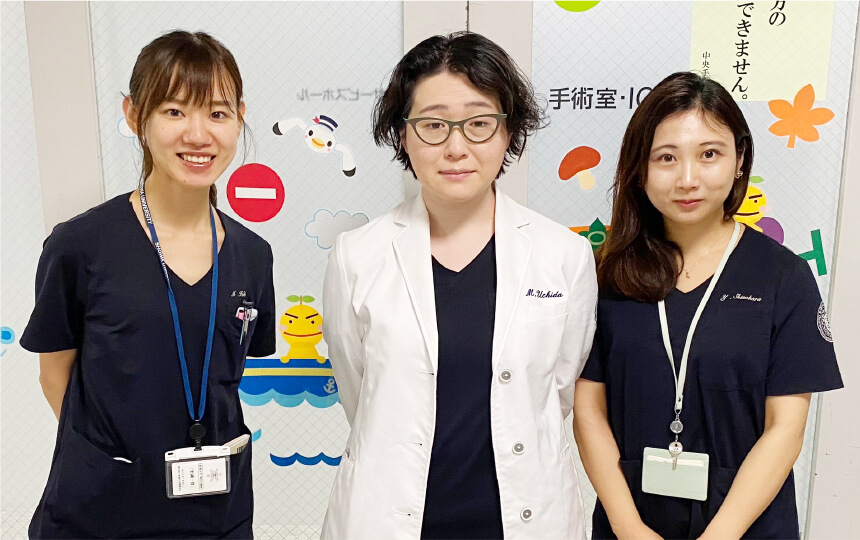 本ホームページでは、外科に興味を持った女性医師の皆さんへ、少しでも親しみを持ってもらえるように、情報を更新していきたいと思います。現在、当医局には、私を含め3人の女性医局員が在籍中です。今一番若手の女性医局員:N先生のキャリア・モデルなど、ご参照ください。